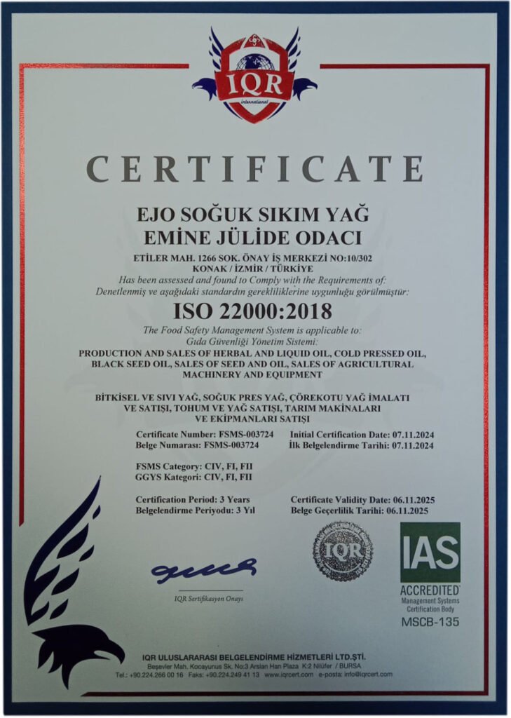 Firmamız 2024 yılında tohum yağları üzerine üretime başlamış en iyi en kalite en hijyen üretimi ile ilke edinerek yola çıkmıştır